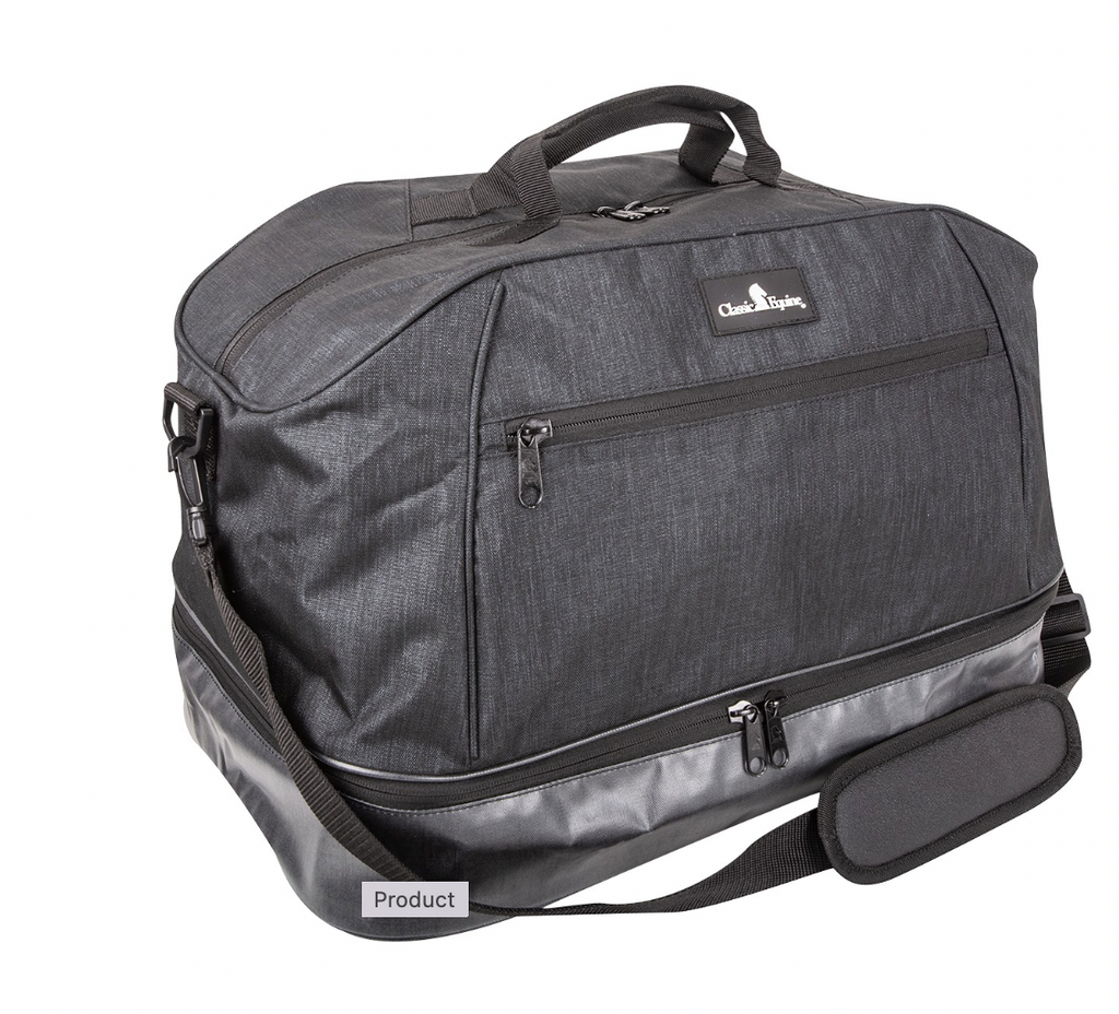 The uniquely large undercarriage compartment of this Classic Equine Weekender Duffle Bag is perfect for storing dirty boots and shoes, keeping them separate from your clean clothes. Roomy enough to fit everything you need for a weekend trip, this bag also features large outside pockets, including one vented pocket for dirty clothes. The durable exterior fabric is easy to clean, making it both practical and reliable. Bag size is 20.5" x 12.75" x 14".