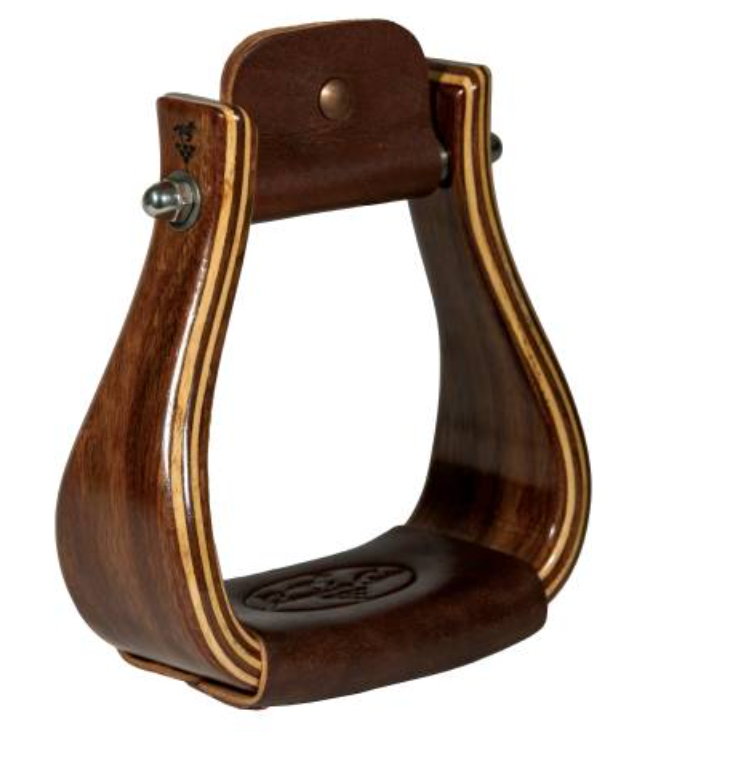 Professional’s Choice wood stirrups are constructed from multiple layers of hard wood pressure laminated together to ensure strength. The stirrups features smoothed edges, stainless steel hardware, and quality laced leather treads. A glossy finish completes this classy, durable stirrup. 3” tread width.