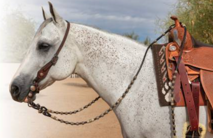 Braided rawhide 16 plait Oklahoma style romal reins. Over 8-3/4 ft in length including popper. 48” front.