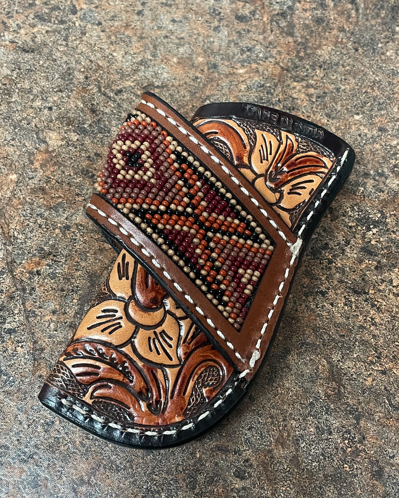 Circle SH Knife Sheath Blue Beaded/Tooled