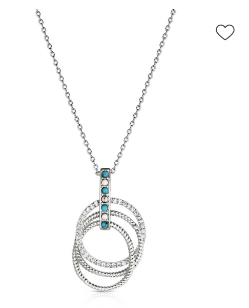Add a joyful touch to your style with this radiant pendant necklace, adorned with a blend of turquoise and sparkling crystal accents. The pendant hangs from a delicate 19 inch silver tone chain. Designed to pair with Circle of the West Earrings and Ring. Stone color may vary.