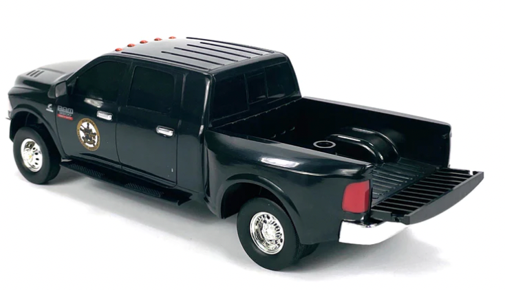 This 1:20 scale replica of Kayce Dutton’s Ram® 3500 Mega Cab Dually comes complete with a working tailgate and a peg-and-hole hitch that connects with our full line of farm and ranch trailers. Made from our proprietary blend of plastic that creates durable and lifelike toys, and features rubber mirrors to prevent them from breaking.