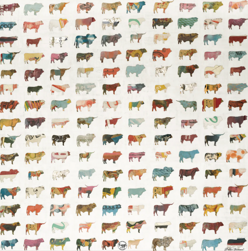 Big Pasture features a colorful herd of longhorns—each one crafted in the original artwork from repurposed objects full of texture and history. This scarf brings a playful yet meaningful nod to bygone eras, perfect for adding character to any modern ranch wardrobe.