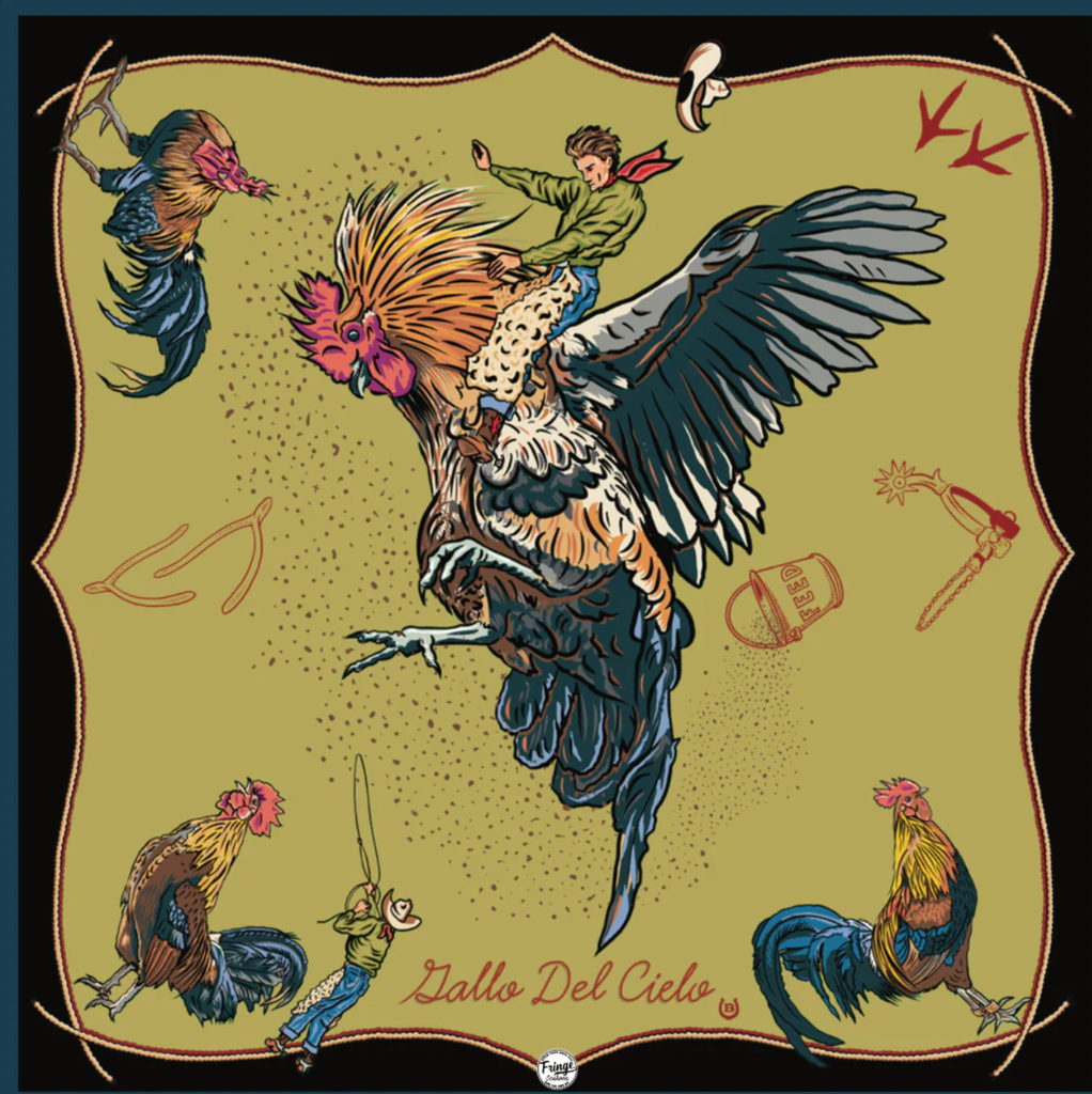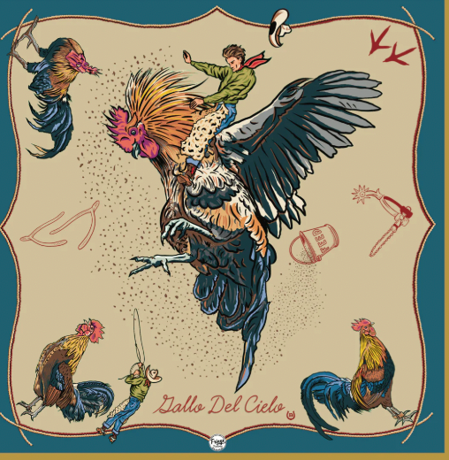 Gallo Del Cielo takes inspiration from the legendary “rooster of the sky,” and the unforgettable cowboy song it’s named after. This design features hand-illustrated boot-scootin’ cowboys, airborne flair, and Easter eggs for those who know the lyrics by heart. It’s Western storytelling with a wink—full of grit, humor, and heart.